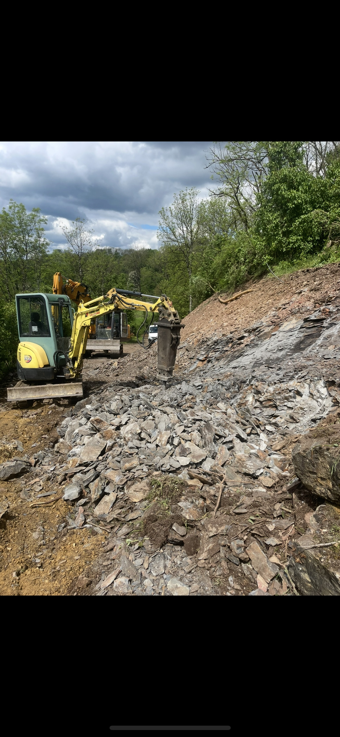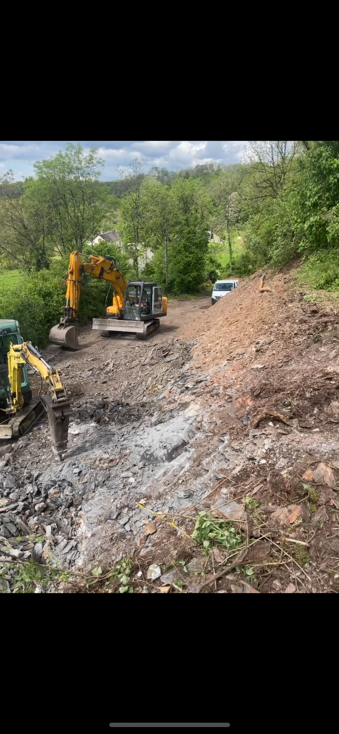 Contrairement à certains chantiers où la roche nécessite des techniques de fragmentation spécifiques, le terrain présentait ici majoritairement des matériaux meubles, ce qui a permis de réaliser les travaux sans extraction importante de roche. Cela a facilité l’avancement du chantier tout en permettant une gestion plus rapide des matériaux.