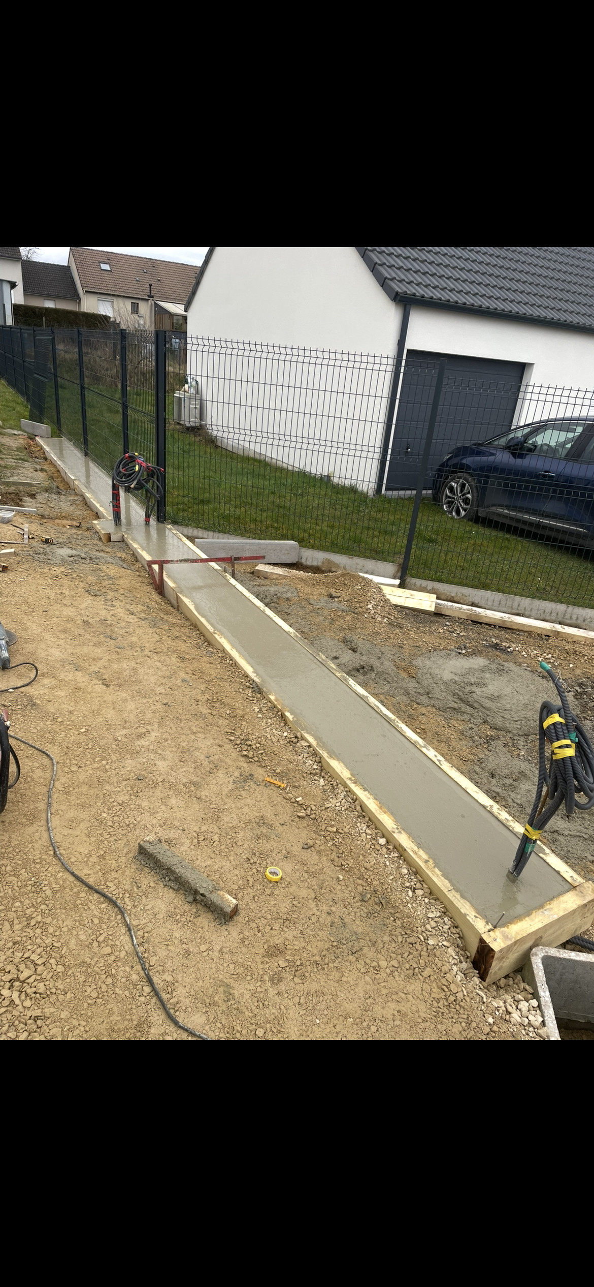 Les équipes d’EPTP ont ensuite coulé un béton de haute qualité, spécialement choisi pour ses performances mécaniques et sa résistance aux intempéries. Le béton a été soigneusement nivelé et lissé afin d’obtenir une surface parfaitement droite, indispensable au bon fonctionnement du rail du portail.